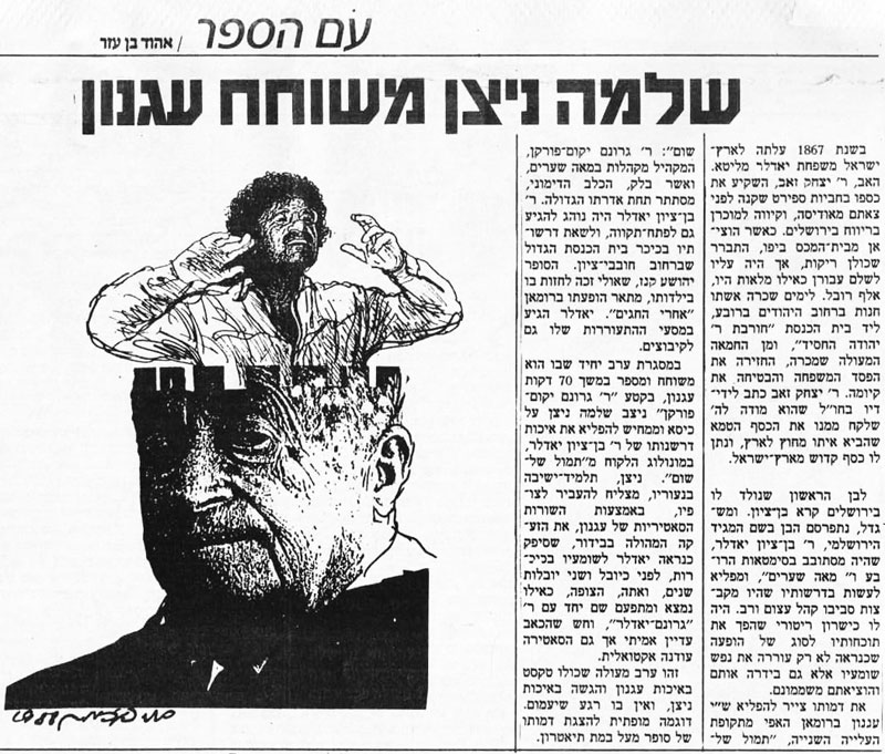 העורך הרשה לעצמו גם בעיתון כלכלי, ובמוסף שעוסק בספרים, להבליט אירועי תרבות מיוחדים. רשימה יפה ומגוונת הופיעה כששלמה ניצן העלה ערב נפלא של סיפורי עגנון.