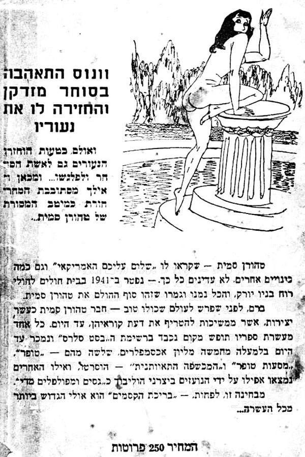 זאת הייתה תקופת הצנע והמעברות, והוצאות ספרי הכיס שאז החלו את דרכן, ניסו להצחיק אותנו עם שערורייה בקלושמרל, פגישה בבית מלון (ספרו של אריך קסטנר, שנקרא בעצם שלושה גברים בשלג), אריאן, שכמו שאריאל סבר כתבה שימש בסיס (ממש רק בסיס) לסרט הנפלא של בילי ויילדר אהבה אחר הצהריים ועם קליני בראון הנפלאה (שבעצם שמה היה קלוני ולא קליני), הספר המופלא של מרג'רי שרף ששימש בסיס, הפעם בסיס איתן, לסרט הנפלא של ארנסט לוביץ', וכמובן עם הסיפורים של פיטיגרולי שזכו אז לתואר המפוקפק "פורנוגרפיה". ואכן, כילדים בני 10, 11 או 12 צחקנו מאוד והעברנו את הספרים מיד ליד מתחת לעיניהם של ההורים, שחשבו שאנחנו קוראים יותר מדי את הספרונים האלה.