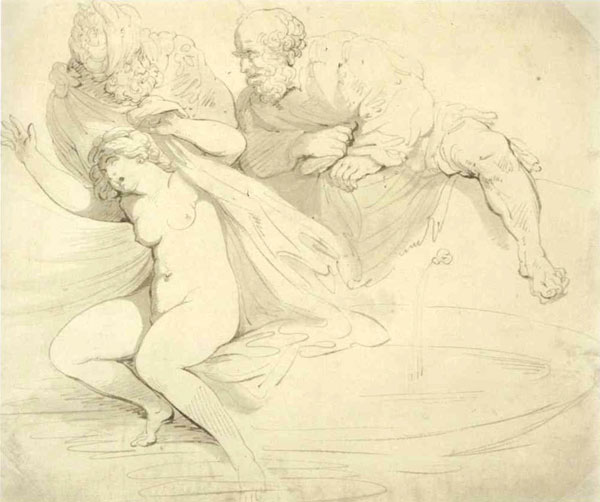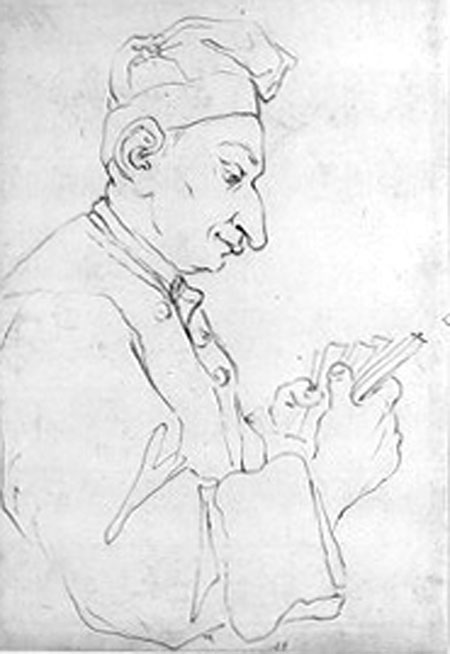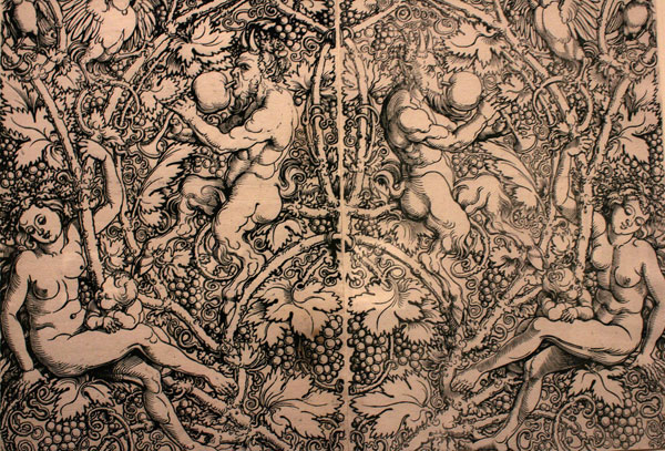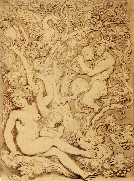 לפעמים כדי ללמוד הוא העתיק יצירות של אמנים קודמים, כמו הרישום הזה, סאטיר ומשפחתו בין הגפנים: