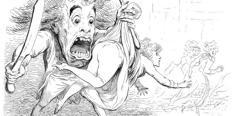 הרשומה הזאת עוסקת בעיקר בשני קריקטוריסטים אנגלים שפעלו במאה ה-18, בתקופה שאוהבים לכנות "תור הזהב של הסאטירה באנגליה" – תקופה שקיבלה את הכותרת התקופה הג'ורג'יאנית.