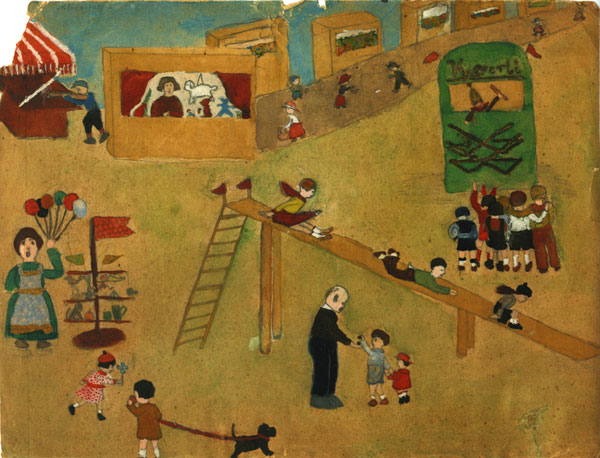 והנה עוד שני ציורים שלה מהילדות. את האיור הזה עשתה בשוויץ ב-1933: