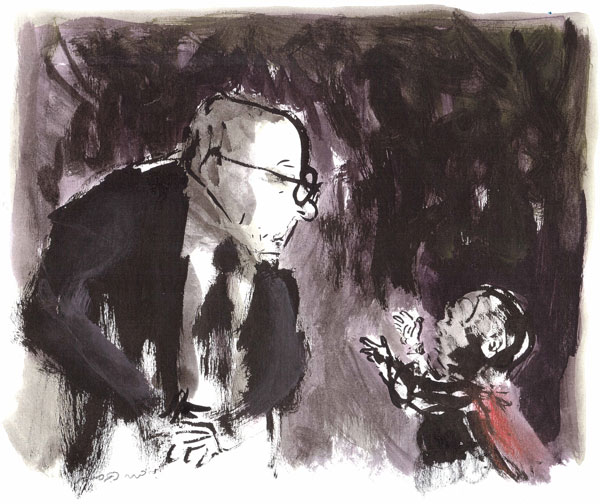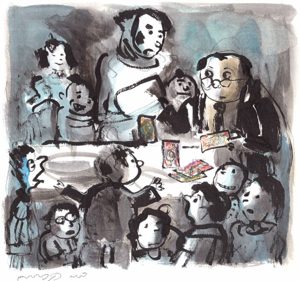 מדי פעם אני חוזר ומאייר בטכניקות שונות איורים לספר הנפלא הזה, הנה כמה:
