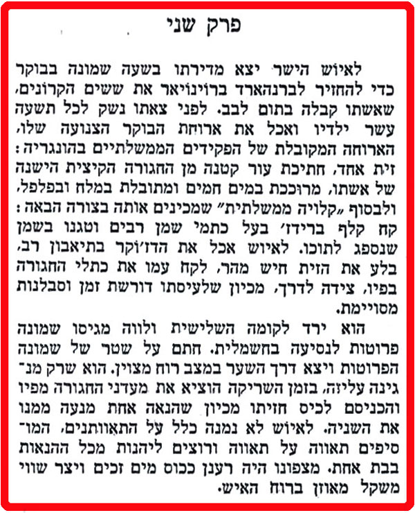 הנה טעימה קטנה מהספר. מדובר בפרק השני שבו יוצא לאיוש בבוקר להחזיר את השוחד שקיבל: