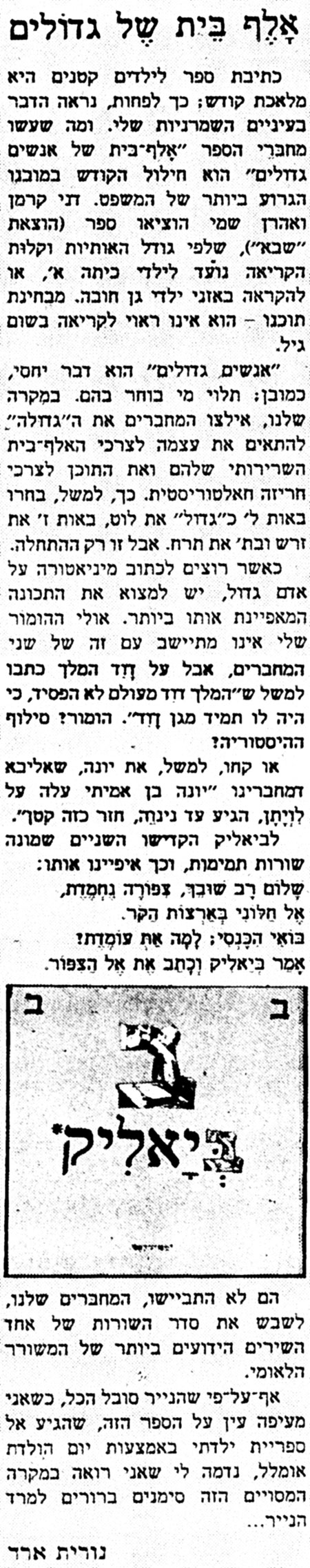 את הספר שלך ושל שמי אני זוכר מימי הגן של הילדים – כל המשםחה נאוד נהנתה ממנו. הביקורת של ארד מאוד מקוממת.