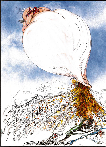 מי שמכיר את הקריקטורות שלו יודע שהוא לא מרחם על אף פוליטיקאי. "את כולם אני שונא", כך הוא מעיד על עצמו.