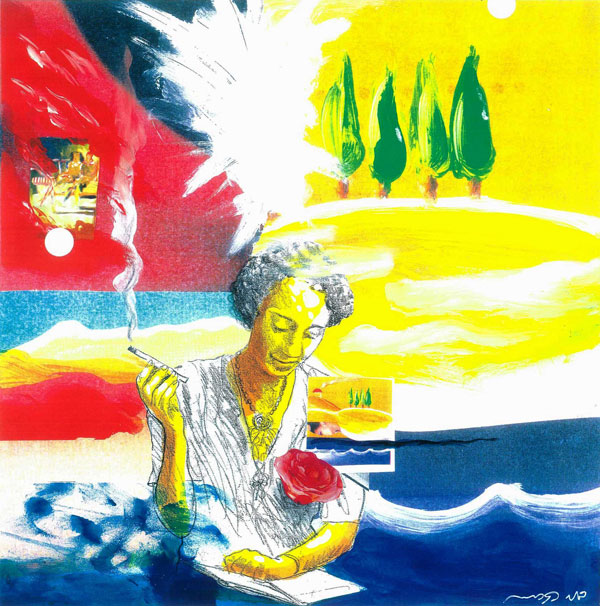 מאחר שבעיני גולדברג היא בהחלט בין "גדולי הדור", אני מביא לכם כאן ציור שלי שהודפס בלוח שנה, ובמרכזו לאה גולדברג ושירה ולא היה בינינו אלא זוהר: