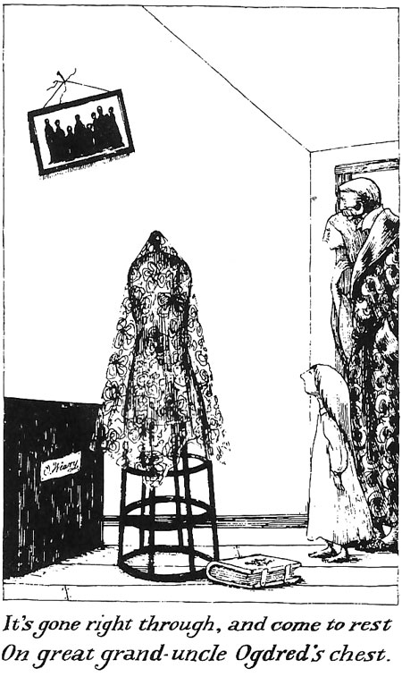הוא ממשיך להשתקע אל תוך הלילה ומבהיל את המשרתת עד מאוד.