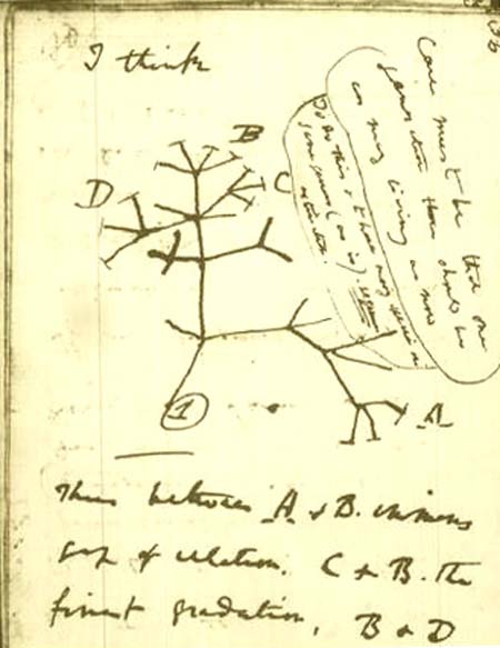 העץ בקריקטורה האחרונה הוא העץ שדרווין עצמו צייר ביומן שלו, כהדגמה חזותית לאבולוציה: