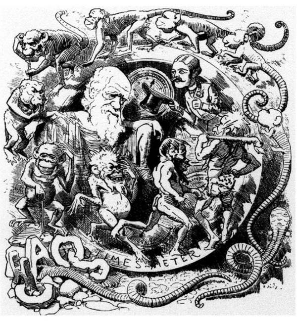 ואכן, הרשומה הזאת עוסקת בהומור, והכוונה היא לקריקטורות שפורסמו על דרווין, על הדרוויניזם ועל האבולוציה.