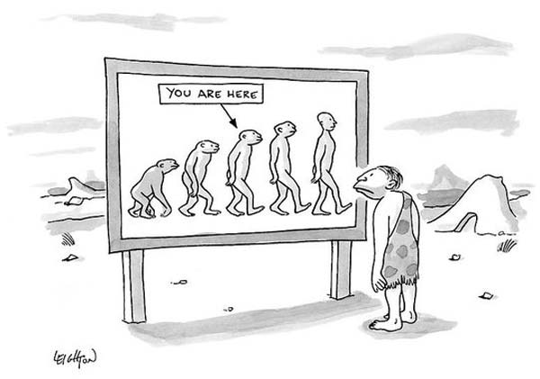 מי שיחפש ברשת ימצא המון קריקטוריסטים שעשו וריאציות על "מצעד האבולוציה". הנה עשר כאלה. לא בכולן הצלחתי למצוא את שם הקריקטוריסט: