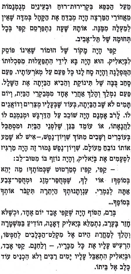אחד הסיפורים באיילת העמק נקרא סיפורים על ביאליק. מתוך הסיפור, הנה קטע על קפי, כלבו של ביאליק: