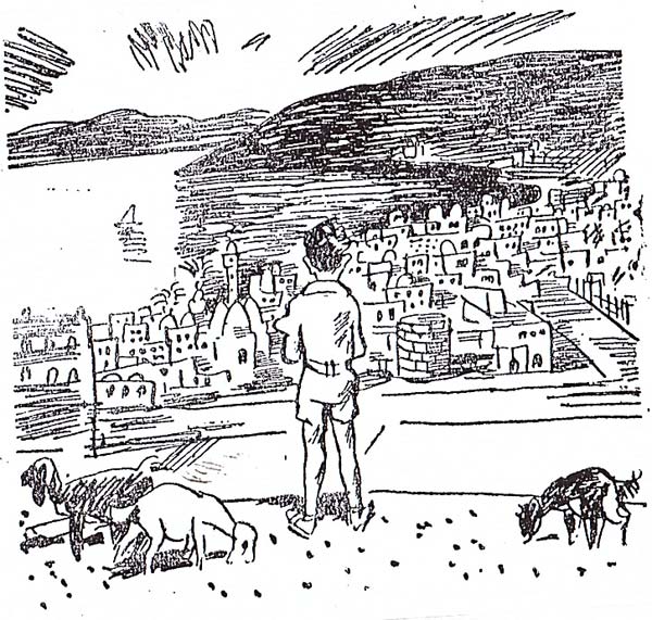 הנה האיור של נחום גוטמן לקטע שבו מתפעם יוסי מן הכנרת: