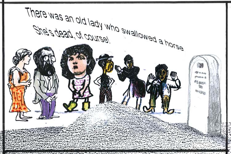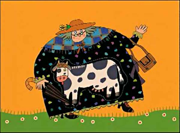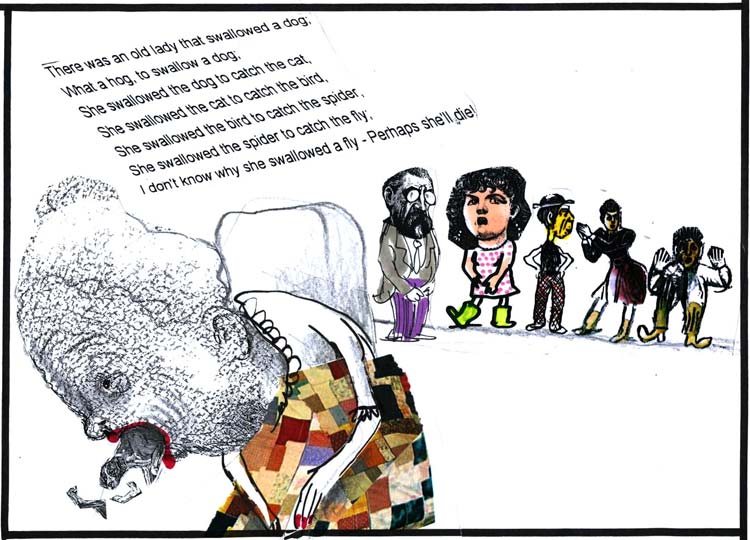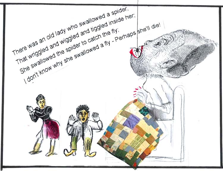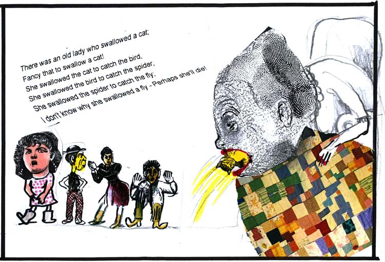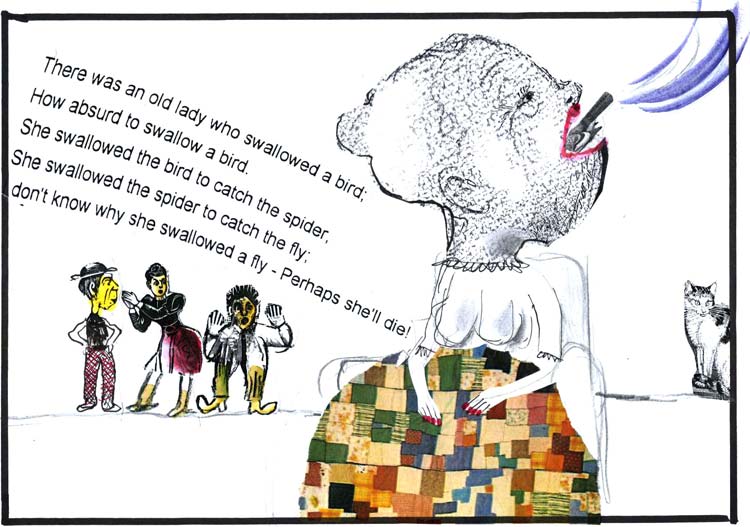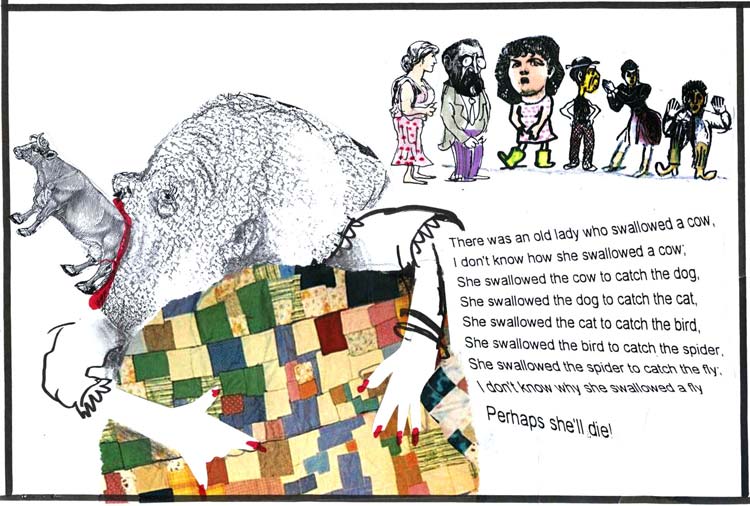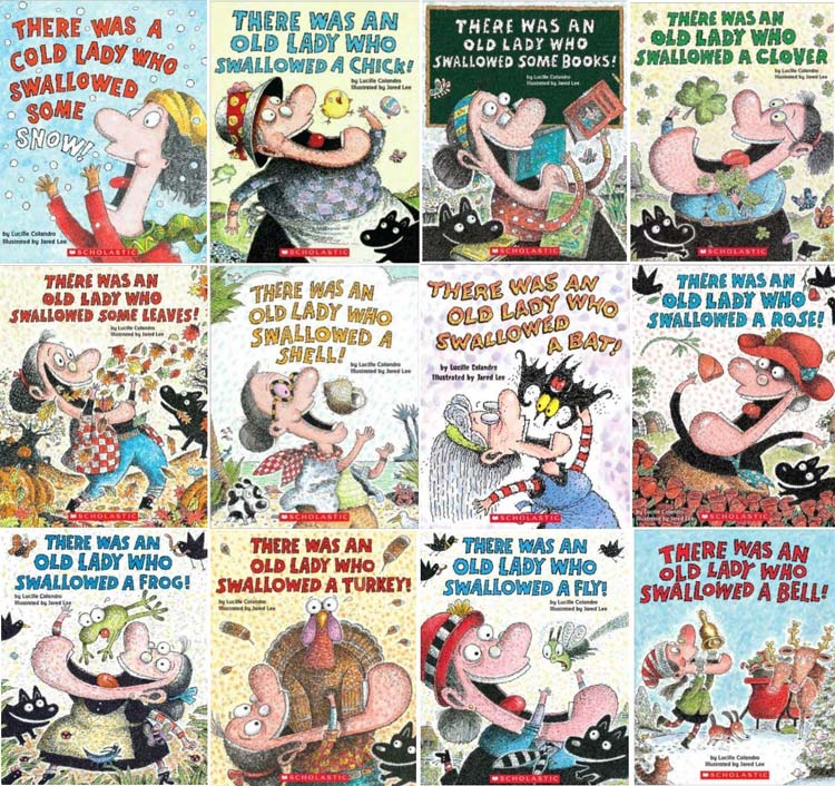 השיר הזה, שהיו לו כמה גרסאות, הפך גם לספר ילדים מצליח. מאיירים רבים אהבו מאוד לאייר אישה זקנה שבולעת פרה.