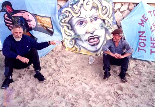 אבנר יושב ליד העפיפון שלי ואני לפני העפיפון שלו.