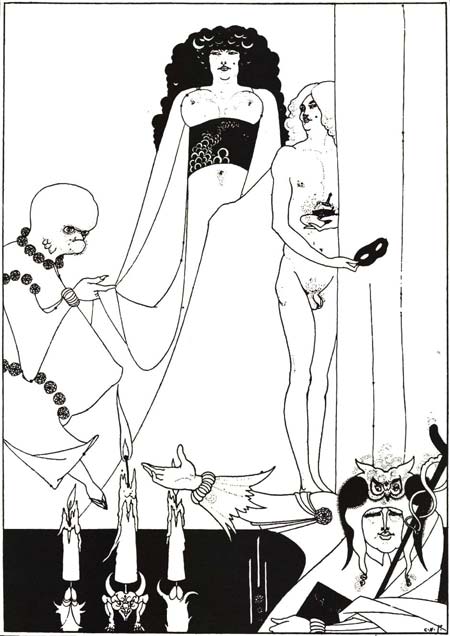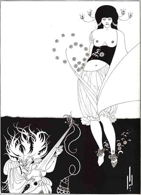 וכעת לכמה איורים שעשה בירדסלי לסאלומה. ההצעה הראשונה שבירדסלי הציע לציור העטיפה הייתה זו:
