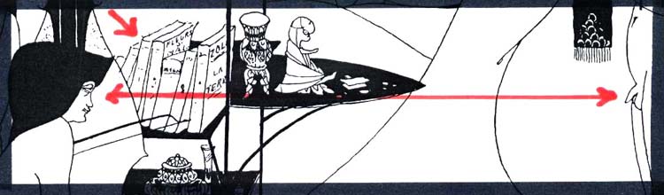 בירדסלי, כמו שאתם רואים, לא מקפיד כל על "קונטיניואיטי" והסורי הזה לא דומה לסורי שבאיור הקודם.