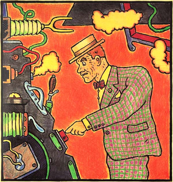 ואז בן בובי לחץ על המתג שכתוב עליו "גנוב את זה עכשיו" והמכונה התחילה לעבוד (כאן יש בספר תיאור ארוך של המכונה). והיא הפיצה ריח נורא עד כדי כך שצ'רלי ואיגי כמעט ברחו משם.