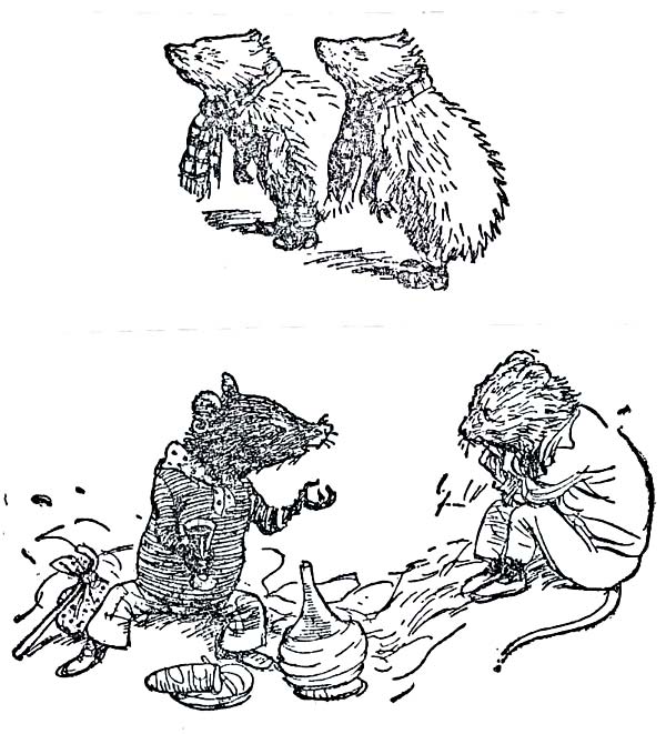 ומכיוון שהיא השאירה בעזבונה רישומים רבים בשחור-לבן, אני מרשה לעצמי לנחש שארנסט שפארד, שהיה צעיר ממנה ב-13 שנה, למד אותם היטב, ומי שמתעמק באיורים שלו לפו הדוב ולהרוח בערבי הנחל יראה את כתב ידה של פוטר באיורים האלה: