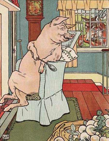 החזירים של ברוק, לעומת אלה של פוטר, הם חזירים ממש. הגרסה שלו לשלושת החזירונים, שזכתה לתהילה גדולה (בעיקר באמריקה) היא יוצאת דופן ושונה מאלפי האיורים שנעשו לסיפור הזה.