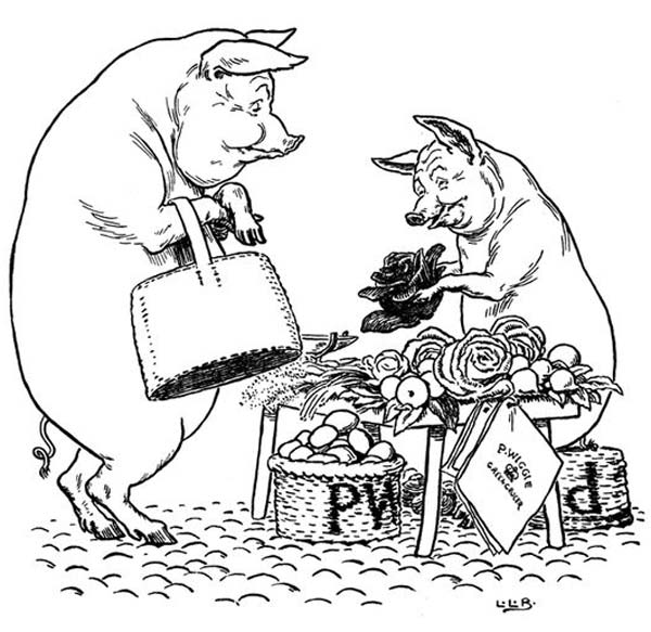 ורק במקרים שבהם הוא רוצה להדגיש איזו תכונה, כמו גאווה חזירית, הוא מלביש אותם: