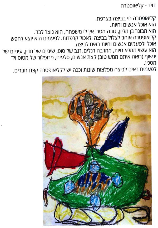 מאז הזמינו אותי כמה בתי ספר לשוחח עם תלמידים על מפלצות. יום אחד כשהגעתי עם אפרים סידון לבית הספר "ניצני אשכול" במועצה האזורית אשכול, פגשתי שם את המורה לאמנות עדי דרימר, שהעניקה לי את הספר הזה: