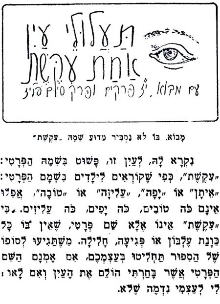 הנה המבוא לספר תעלולי עין אחת עיקשת:
