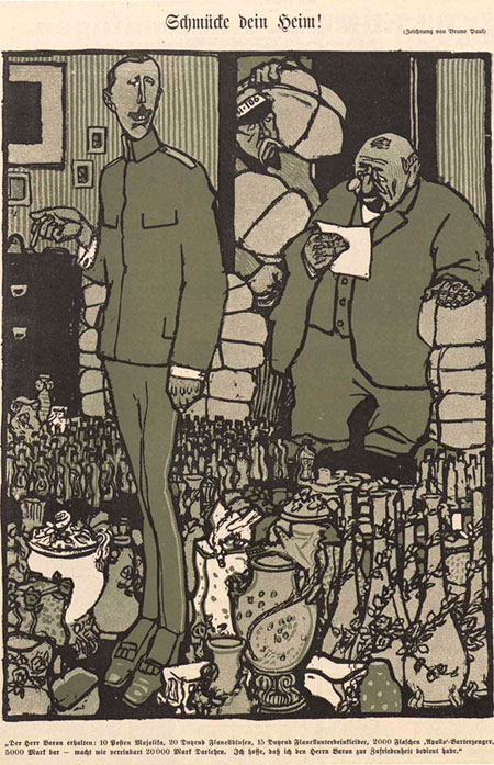 למרות שהכניס בלובשי המדים שלו מידה לא קטנה של אירוניה, הקהל הלאומני בגרמניה לא הבין את זה ואהב מאוד את האיורים האלה.