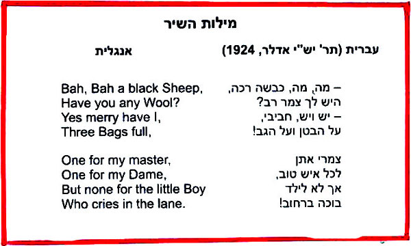 שיר הילדים האנגלי Baa Baa Blacksheep , שהגרסה הראשונה שלו נכתבה ב-1731, השפיע על כותבים רבים. הנה השיר באנגלית ובתרגום לעברית של ישי אדלר: