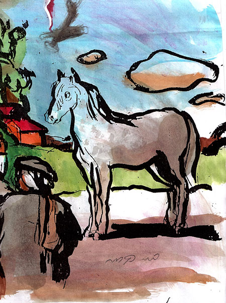 הסוס הבא לקוח מאחת הסקיצות שעשיתי לעטיפה הנ"ל: