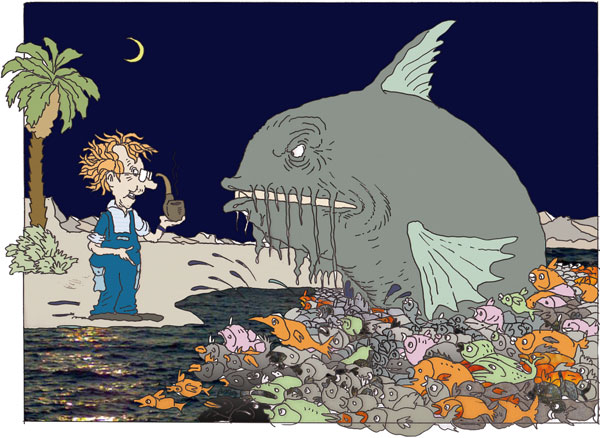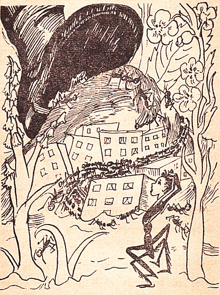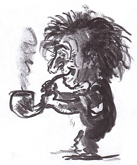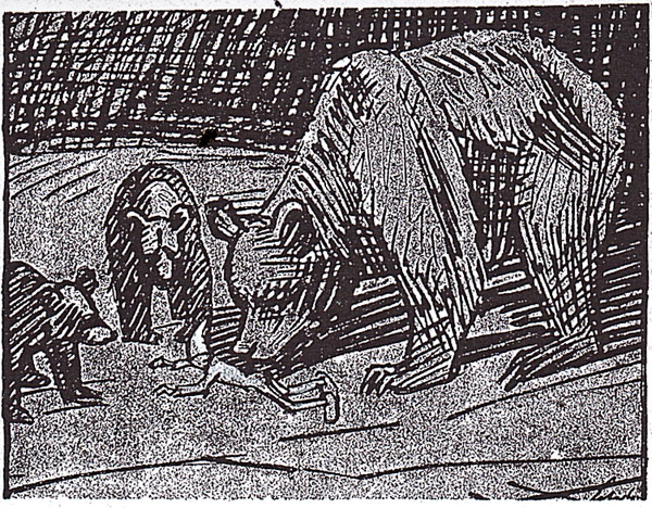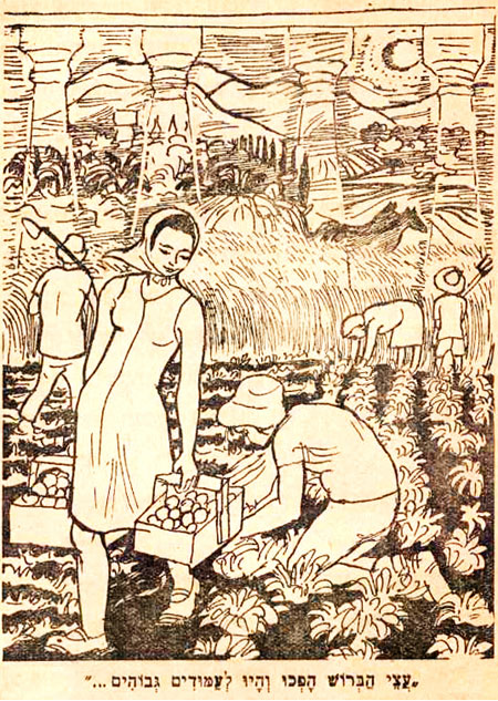 קל מאוד לזהות באיור הזה את ההשפעה של "הציירים היהודים", ובעיקר כמובן מארק שגאל ויששכר ריבק.