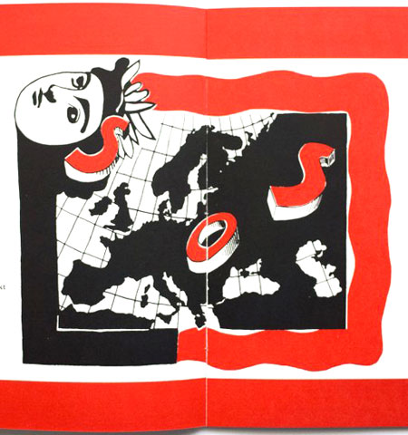 שימו לב לאירופה שעליה האותיות S.O.S, כשהאות "O" היא על פולין, ופורטרט של פטררקה מפנה את פניו מאירופה. זה אותו סטרן ש-18 שנים מאוחר יותר הופיע עם הטקסט שלו על ארץ ישראל: