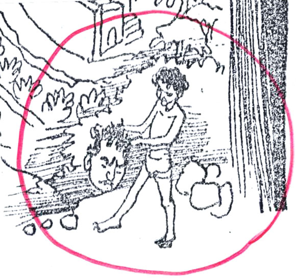 האיור הזה למשל מתאר את ניסן הילד הרע שהופך לנמלה, והוא ממש הפחיד אותי, כמעט כמו האיור שבו נראה נילס הולגרסן הקטן בציפורני הדוב: