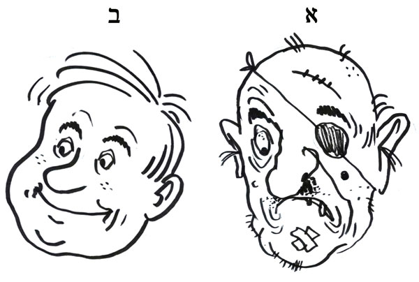 "אז אם כך, כעת כשאני מאייר מקצועי", אני שואל את הילדים, "ואני רוצה לצייר מישהו שאני שונא – רמאי, גנב ופושע מתועב, איך הוא צריך להיראות?