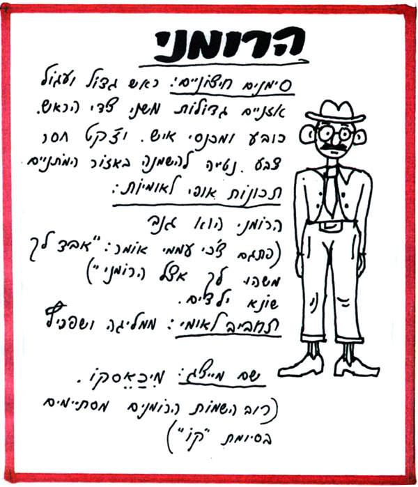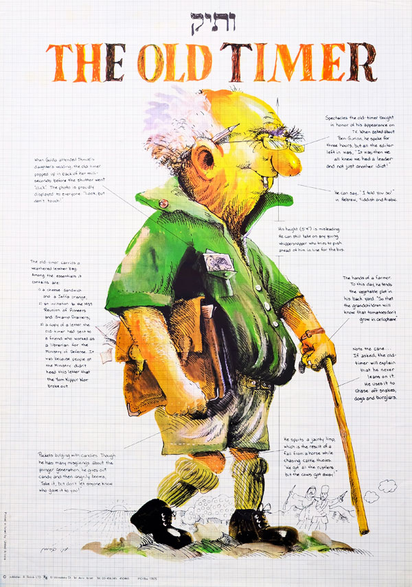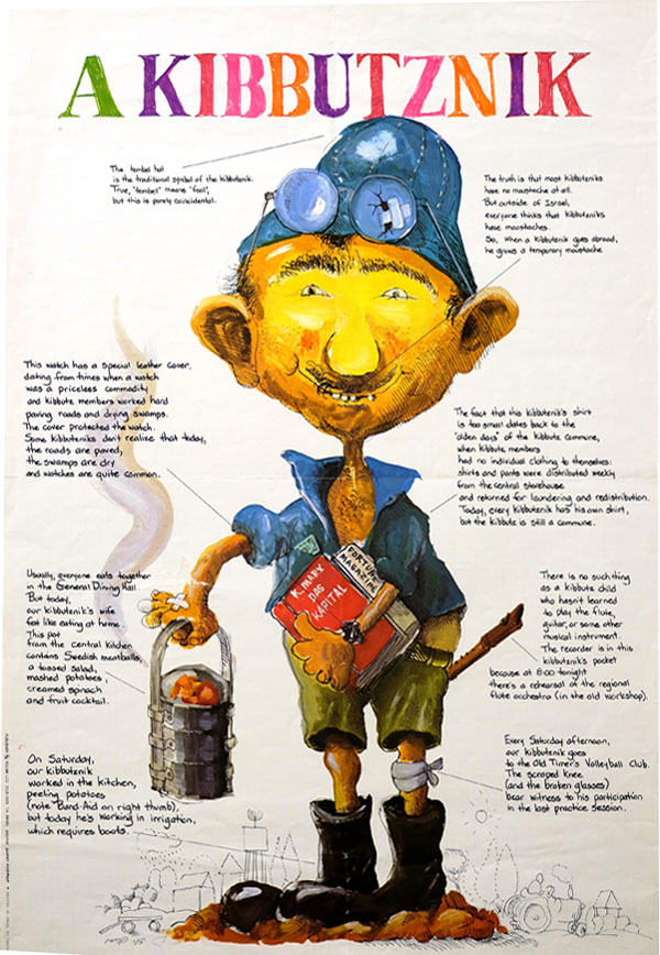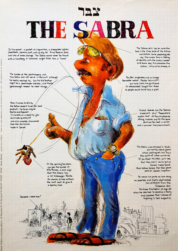 ואז יצרתי עבור עמוס רולניק, שעסק בהפקה ושיווק של דברי דפוס, פוסטרים, גלויות ועוד, את הכרזות הבאות. כך ציירתי את הסטריאוטיפים בישראל של אז:
