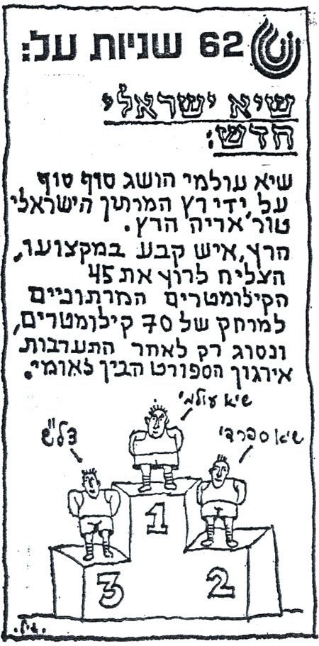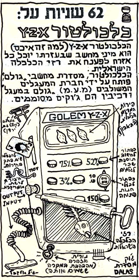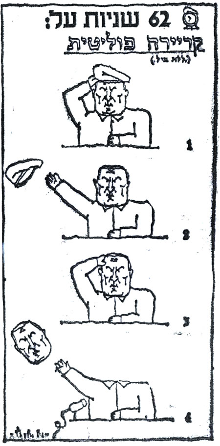 גיל אלקבץ המנוח, מגדולי המאיירים והאנימטורים שלנו, היה אז בראשית דרכו והיה לו מדור שנקרא 62 שניות על. הנה כמה מהטורים במדור: