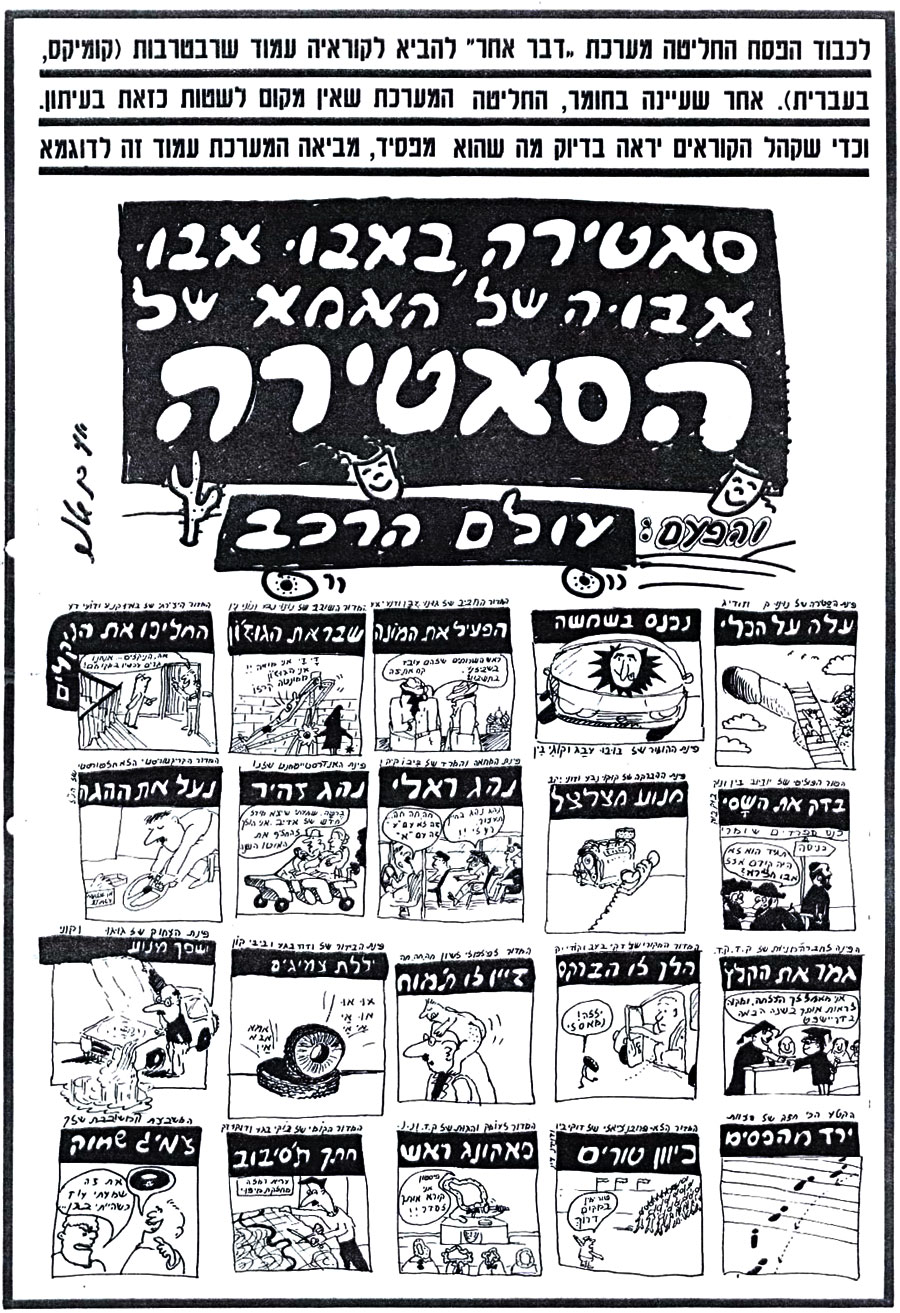 בדבר אחר, בעיקר בתקופה הראשונה, התפרסמו במוסף גם איורים וטורים מצוירים של יוצרים שונים. הנה כמה תזכורות כאלה: