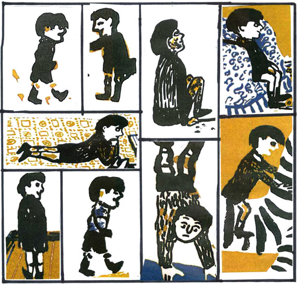 רולן הוא ילד קטן. פרנסואה לא מספק לנו גיל וגם לא דמות שקל לקורא לזהות, משהו שהוא מנוגד לרוב המאיירים. שימו לב לאוסף הדמויות של רולן בספר: