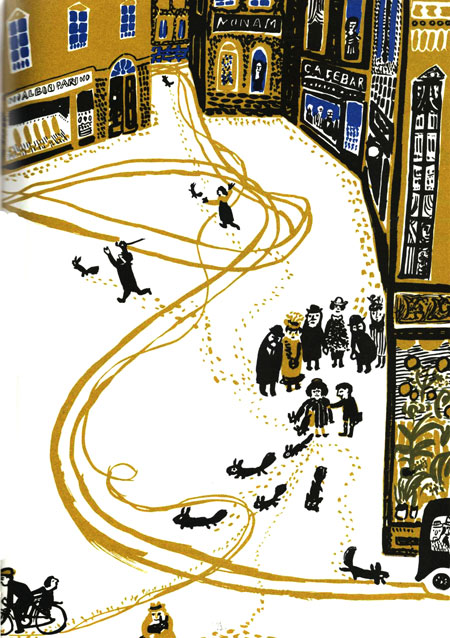 וכאן אני מרשה לעצמי להראות לכם כמה סצנות מהרחוב בהגדלה ולשאול אתכם אם היום מישהו היה מאשר איורים כאלה לספר ילדים (רולן כאמור יצא לאור ב-1958).