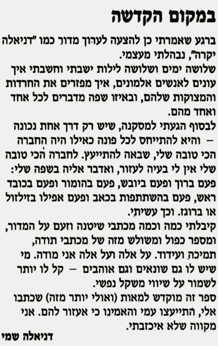 ב-16 באפריל 2016 הלכה לעולמה דניאלה שמי, חברה יקרה, חכמה ומצחיקה.