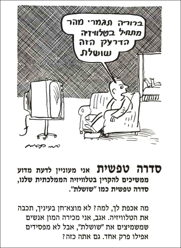 היו ימים שאנשים הכירו אותו כשהיה מופיע בטלוויזיה. אז פעם באיזה אירוע מישהו נעמד לידו, הצביע עליו וצעק לחבר שלו שהיה בקצה השני של האולם: "בוא תראה, הנה החרא הזה מהטלוויזיה!"