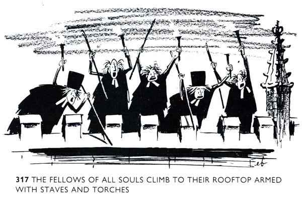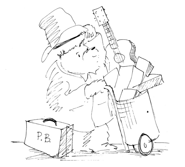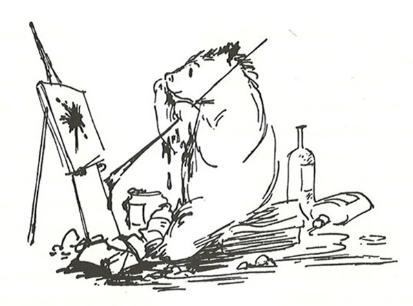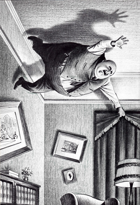 פה ושם הוא פרסם גם איורים קריקטוריים, בעיקר בכתב העת היוקרתי "הארפרס מגזין". הנה שלושה מהם: