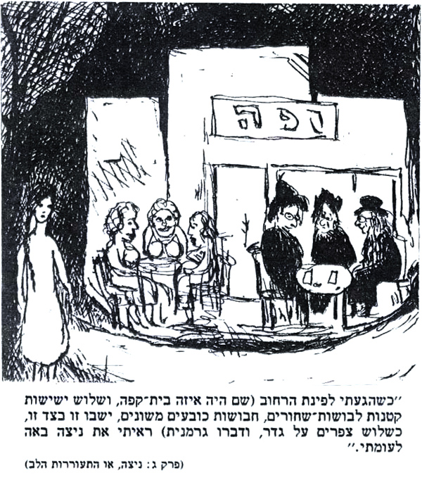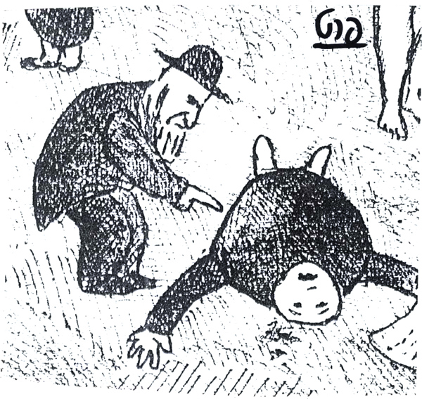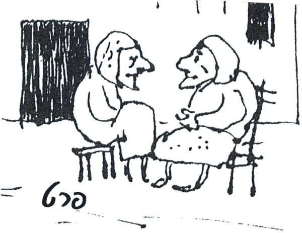 מההיכרות שלי איתו, ובעיקר מהספר החיים כמשל, חשבתי שאין לו בכלל הומור, ודווקא ברישומים אפשר לזהות סוג של הומור. למשל בפרטים האלה: