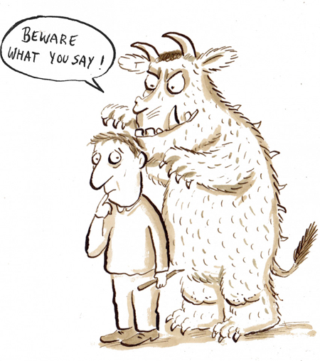 עוד מפלצת שכבשה את ליבם של הילדים האנגלים, והתברר לי שלא רק אותם. שמה של הסופרת שכתבה את גראפאלו (טרופותי בתרגום העברי) היה מוכר לי. היא כתבה שירים, סיפורים ומחזות. והמאייר ששיתף איתה פעולה היה בעל שם גרמני, וזה סקרן אותי.