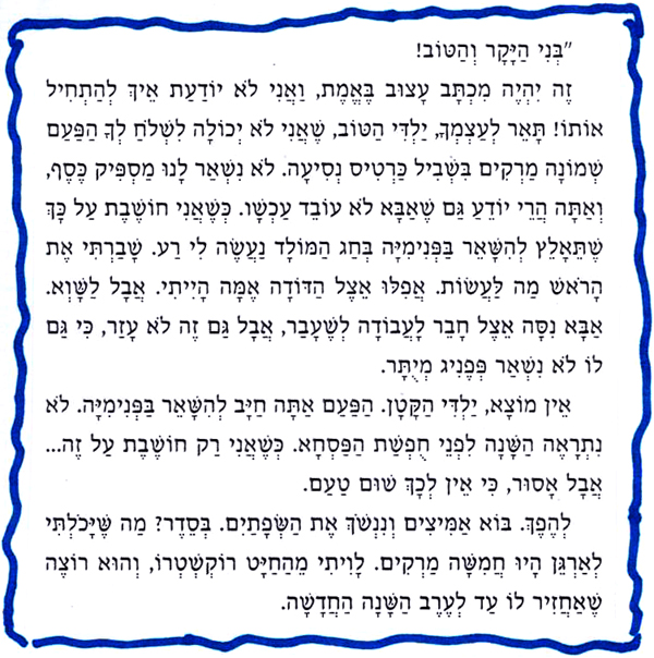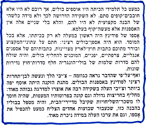כשאתם קוראים: "פודינץ זה היה נקרן במידותיהם של הבריות" תחשבו עלינו, ילדים בני עשר, שמתמודדים עם העברית הנפלאה של אביגדור המאירי, שהביא לנו בין השאר גם את המשפטים האלה: