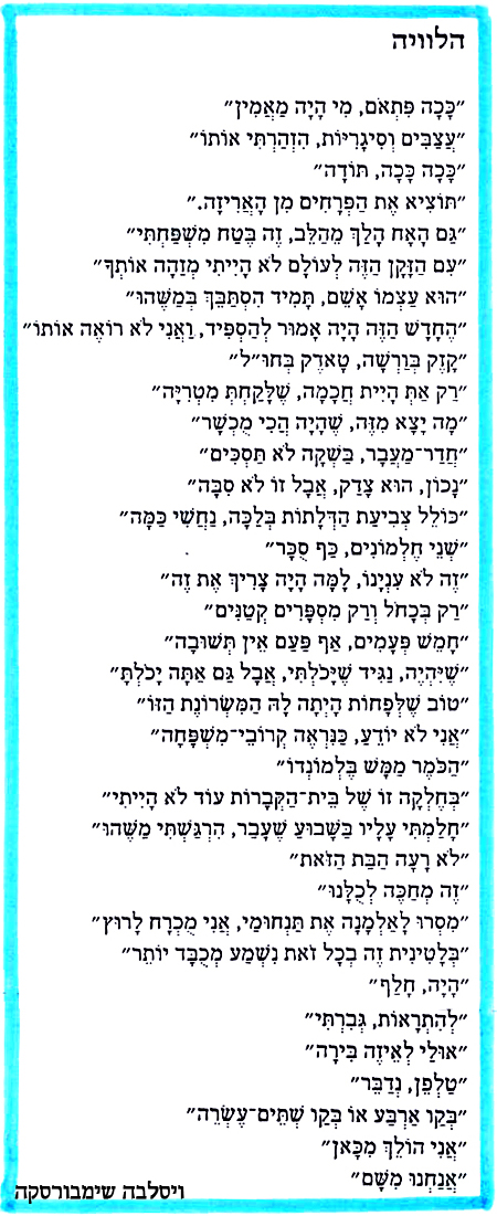 לימים, כשקראתי את השיר הנפלא של ויסלאבה שימבורסקה הלוויה, נזכרתי בקטע של סנש. הנה השיר: