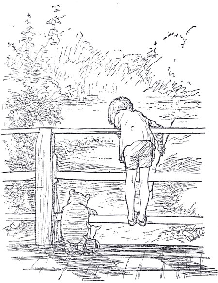 בסקיצה של כריסטופר רובין על הגשר, העין של הקורא עסוקה מאוד במסביב, ובאיור הסופי קל לה להתמקד בנושא המרכזי.