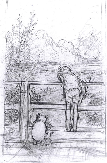 שימו לב למיקום של פו וחזרזיר בסקיצה הנפלאה הזאת: