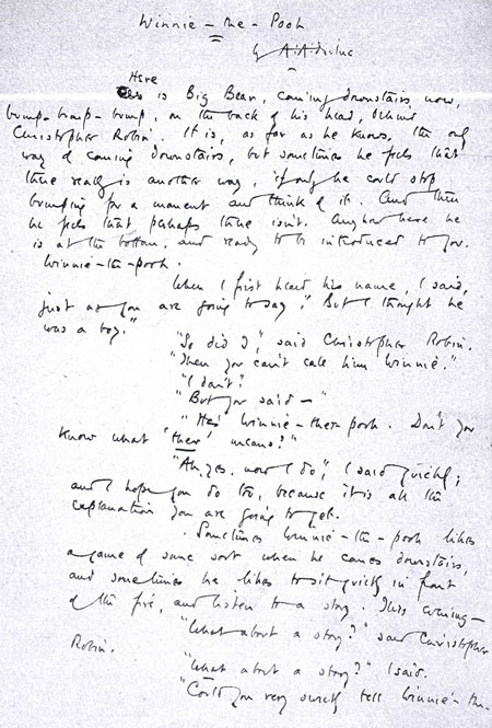 הנה עמוד מכתב היד של א.א. מילן מהספר פו הדוב: