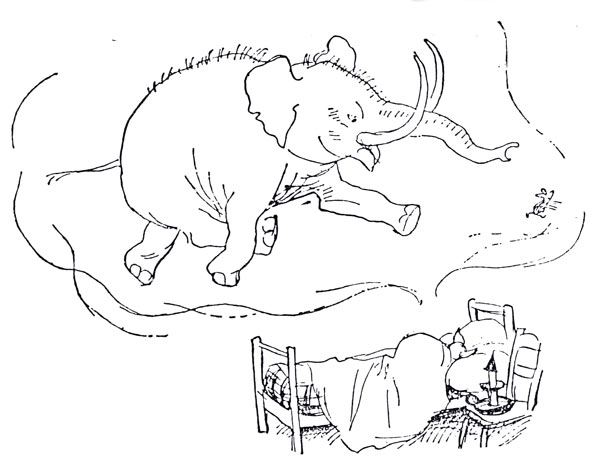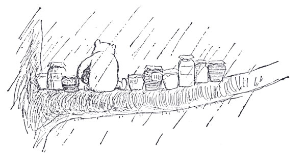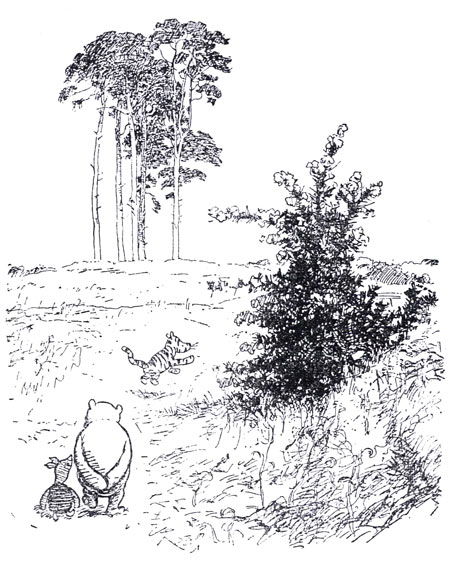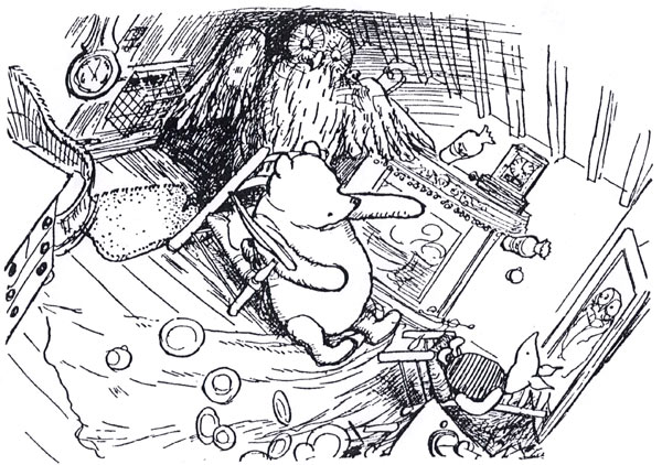 למשל, בספר הבית בקרן פו, בסערה הגדולה שבה נהפך ביתו של הינשוף, יש איור כזה: