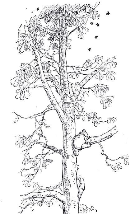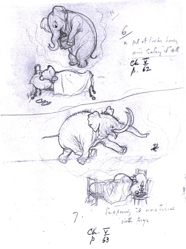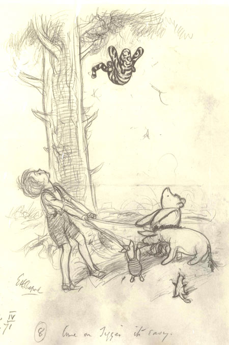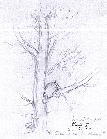 הנה עוד מקרה שברור לנו ששפארד הכין את הסקיצה כדי לתכנן איך ייראה פו בטיפוס על העץ: